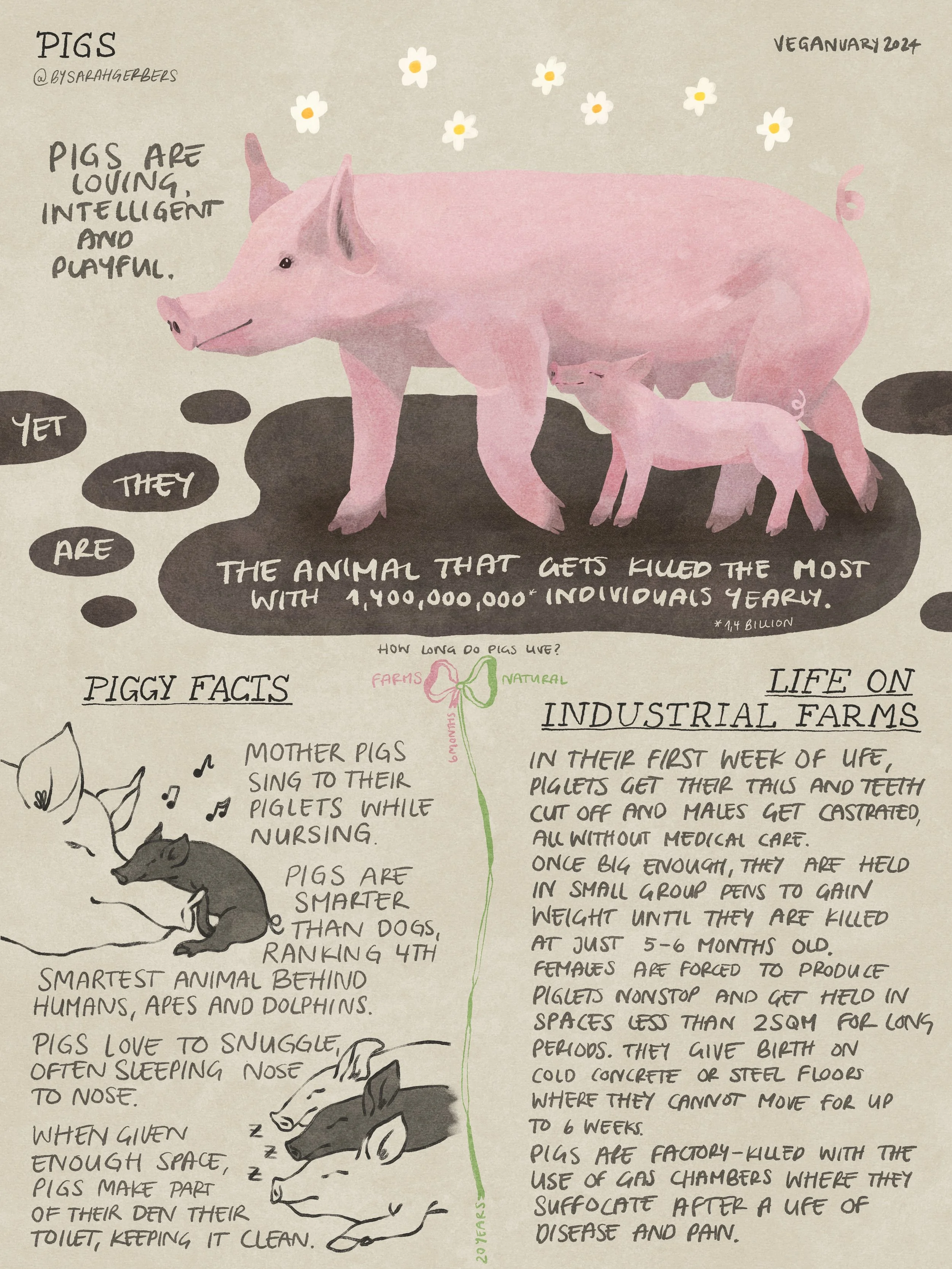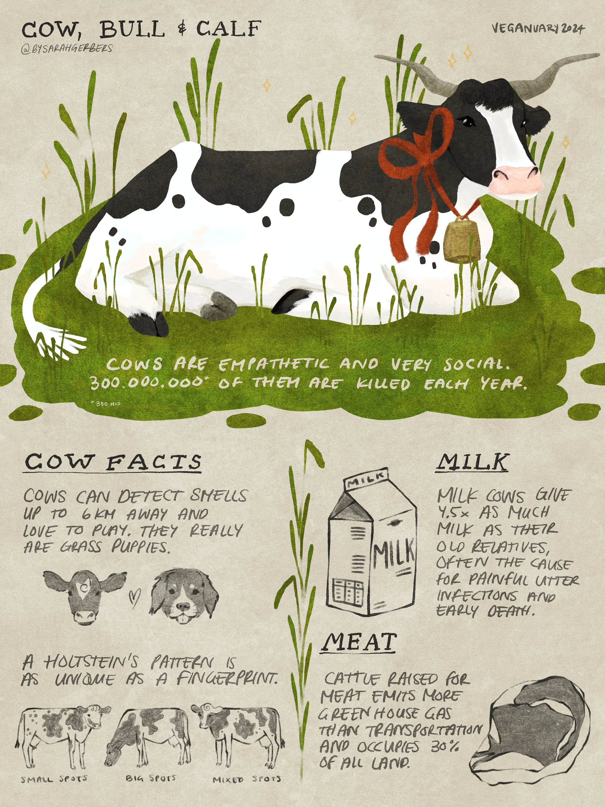 Tiere im Fokus: Informative, illustrierte Poster für Veganuary 2024